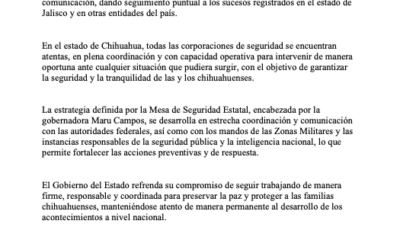 En Chihuahua, enfatizó la titular del Ejecutivo, la seguridad se construye con respeto, coordinación y confianza, por lo que agradeció a las zonas militares 5/a y 42/a, a la XI región militar y a la Guardia Nacional, por la cooperación que han mantenido con el Estado, pues afirmó, cuando la instituciones caminan unidas, el orden se fortalece.