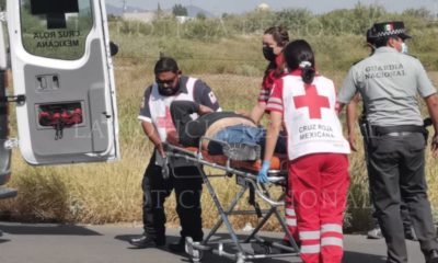 Delicias.- Un hombre sufrió una caída en movimiento abordo de una moto bici hechiza sobre la carretera federal a la altura del Parque Fundadores. El hecho...