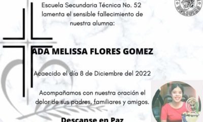 Dolor y consternación se vive en la escuela Secundaria Técnica 52 por el fallecimiento de la alumna Ada Melissa Flores Gómez. Su fallecimiento dejó un gran...