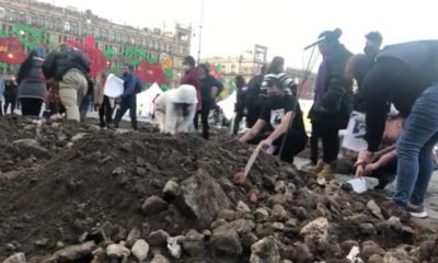 Colectivos de personas desaparecidas se manifestaron frente a Palacio Nacional con la simulación de fosas clandestinas. Se trata de una manifestación pacífica para demandar ayuda del Gobierno Federal. La protesta es encabezada por Una Promesa...