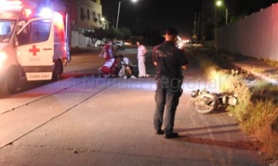 Grave terminó un motociclista al volcar la noche del domingo por tratar de evitar señalamiento preventivos que estaba sobre la avenida Río Chuvíscar del sector sur....
