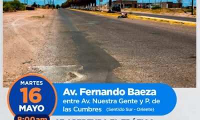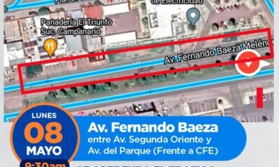 El Titular de Vialidad en Delicias, Erick Rodríguez, anunció otro cierre de la avenida Fernando Baeza a partir de este lunes 8 de mayo. “Tenemos otro...