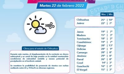 Para este martes, se prevén temperaturas cálidas a templadas en gran parte del estado, así como la presencia de fuertes rachas de viento a partir de...