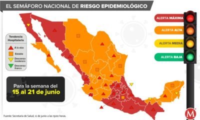 La Secretaría de Salud federal informó que el semáforo de coronavirus para la semana del 15 al 21 de junio iniciará con 16 estados en color...