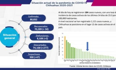 El Gobierno del Estado, a través de la Secretaría de Salud de Chihuahua, presenta este 30 de octubre el reporte COVID-19, en el cual se registran...