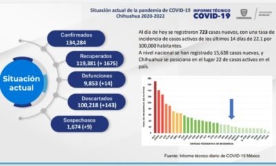 La Secretaría de Salud confirmó el contagio de 723 personas y 14 decesos por coronavirus en 3l estado, desde el inicio de la pandemia se han...