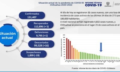 La Secretaría de Salud estatal dio a conocer que se registraron solo 4 casos de covid en la región, 3 casos en el municipio de Delicias...