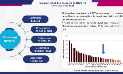 En las últimas 24 horas la Secretaría de Salud confirmó 1,397 nuevos casos de Covid-19 en la entidad, así como 25 defunciones, por la que se...