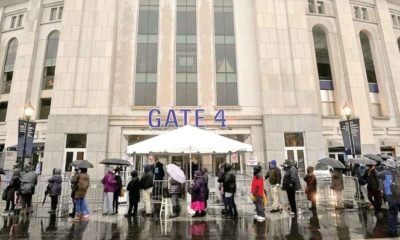 Desafiando el frío y la lluvia, centenares de personas comenzaron a vacunarse contra covid en el icónico estadio de los Yankees en el Bronx, el distrito...