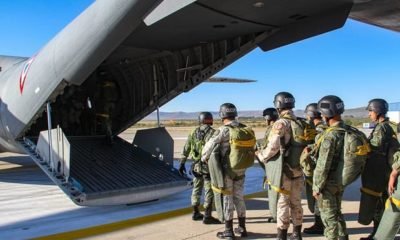 Elementos de la Brigada de Fusileros Paracaidistas del Ejército Mexicano realizaron cursos de adiestramiento en asalto aéreo y salto de cinta estática en Santa Gertrudis, municipio...
