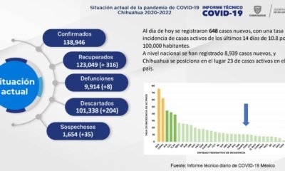 El Gobierno del Estado, a través de la Secretaría de Salud de Chihuahua, presenta este 9 de marzo el reporte COVID-19, en el cual se registra...