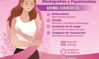 Será el lunes 20 de mayo y también brindarán servicios de detección de hipertensión y glucosa El lunes 20 de mayo a partir de las 8...