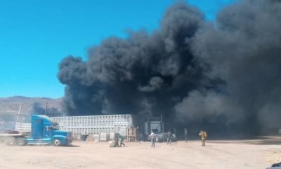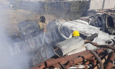 Se registró un incendio en llantas y pastizales que amenazó con propagarse a una gasolinera, afectando camiones estacionados al interior de corralón ubicado a la salida...