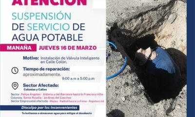 La Junta Municipal de Agua y Saneamiento de Camargo informó que se tendrá suspensión del servicio de agua potable el día de mañana. Esto debido a...