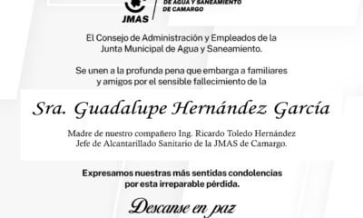 El consejo de administración y empleados de la Junta Municipal de Agua y Saneamiento se unen a la pena que embarga a familiares y amigos por...
