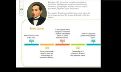 El libro Nuestros Saberes de tercer grado de primaria, contiene una línea del tiempo que marca el nacimiento del expresidente Benito Juárez el 18 de marzo, y no...