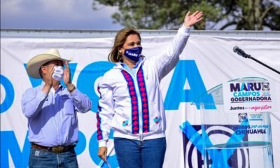 La candidata a la gubernatura de Chihuahua por el PAN-PRD, Maru Campos Galván encabezó un automitin este sábado en Guachochi, acompañada por Antonio Ronquillo, candidato a...