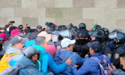Un grupo de maestros de Oaxaca retiró las vallas de Palacio Nacional para intentar entrar al recinto, justo minutos antes de iniciar la conferencia matutina del...