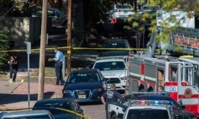 Imágenes difundidas por testigos en las redes sociales muestran a niños o adolescentes saltando desde las ventanas del edificio de tres pisos para huir del tiroteo....