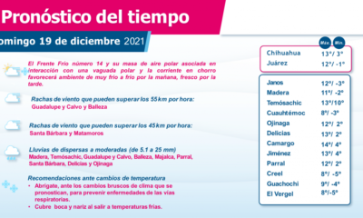 La Coordinación Estatal de Protección Civil (CEPC), informó que con motivo del Frente Frío No. 14, en conjunto de la segunda Tormenta Invernal de la temporada,...