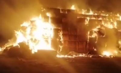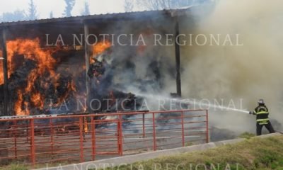 Una fuerte movilización de dos municipios se realizó esta tarde debido a un incendio de grandes magnitudes en pacas y maquinaria dentro de un rancho en...