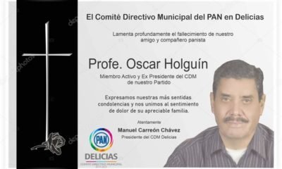 El Comité Directivo Municipal del Partido Acción Nacional Delicias lamentó el sensible fallecimiento de un militante. Se trata del profe Óscar Holguín, quien era miembro activo...