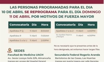 Para quienes estaban agendados este 10 de abril, por causas de fuerza mayor se suspenderá la aplicación para el domingo 11 de este mes. Durante el...