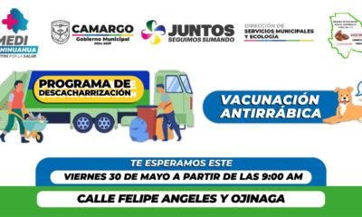El Gobierno Municipal de Camargo invita a la ciudadanía a participar en la jornada de descacharrización y vacunación antirrábica, que se llevará a cabo este viernes...