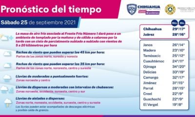 La Coordinación Estatal de Protección Civil alertó sobre el ingreso de un frente frío sobre la frontera norte del estado de Chihuahua, que permitirá una variación...