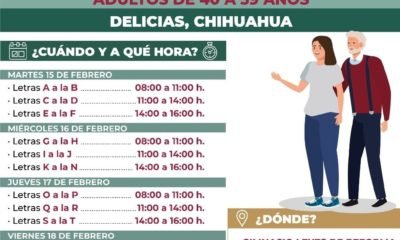 El próximo martes 15 de febrero iniciará la aplicación del refuerzo para adultos de 40 a 59 años en el municipio de Delicias. Las sedes de...