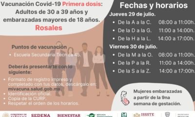 El jueves inicia la vacunación a personas de 30 a 39 años de edad en el municipio de Rosales y Julimes. Los puntos de vacunación serán...