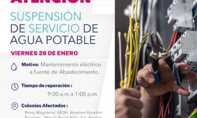 La Junta Municipal de Agua y Saneamiento de Camargo informó que este viernes 28 de enero se suspenderá el servicio debido al mantenimiento eléctrico a la...
