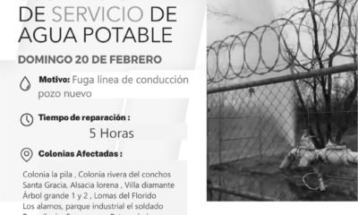 La Junta Municipal de Agua y Saneamiento de Camargo informó a la ciudadanía que se suspenderá el servicio de agua potable. Esto debido a una fuga...