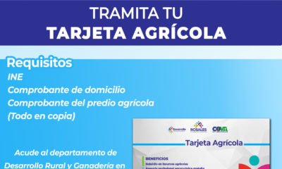 El Gobierno Municipal de Rosales, a través de la dirección de Desarrollo Rural y Ganadería, presentó el programa “Tarjeta Agrícola”. Este programa traerá apoyo directamente a...
