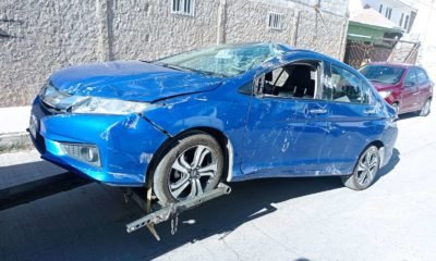 Las fuertes ráfagas de viento derribaron una barda que cayó encima de tres vehículos en la colonia Deportistas en la ciudad de Chihuahua. La barda que...