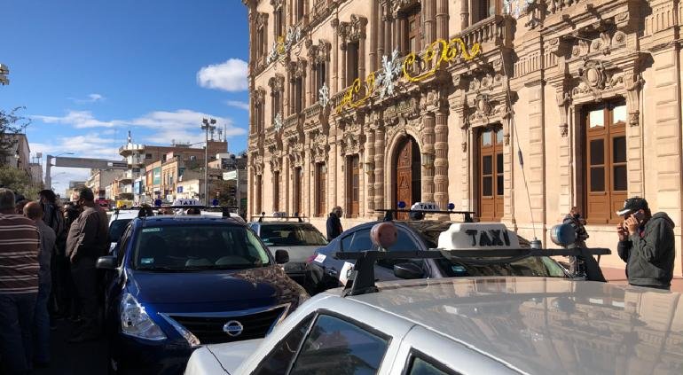 Los taxistas de la capital den estado bloquearon la calle Aldama y la calle Vicente Guerrero, frente a Palacio de Gobierno, como protesta por las plataformas de transporte Uber y DiDi.