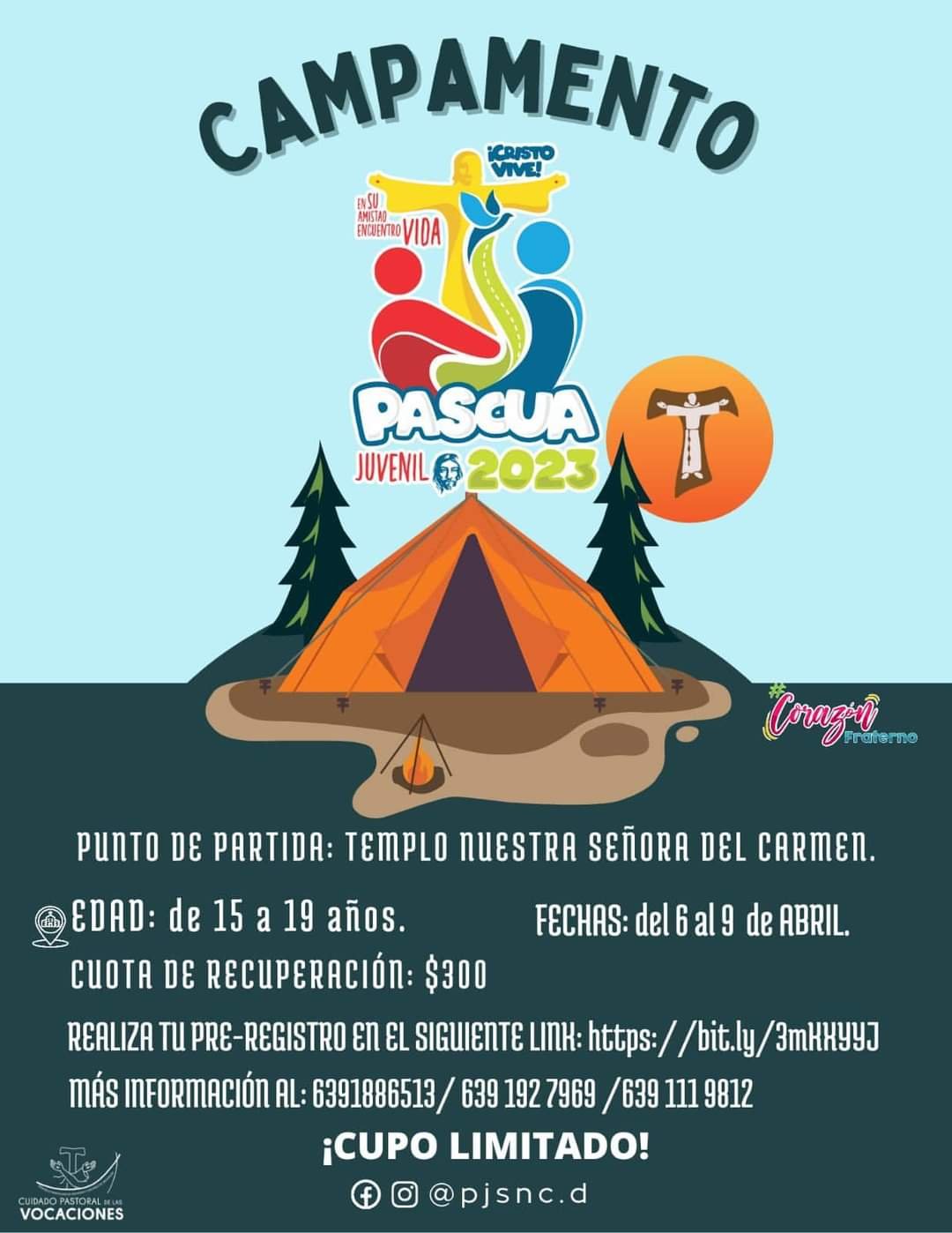 El templo de Nuestra Señora del Carmen invitó a todos los jóvenes de 15 a 19 años, a que se inscriban y participen en el campamento “Pascua Juvenil 2023”.
