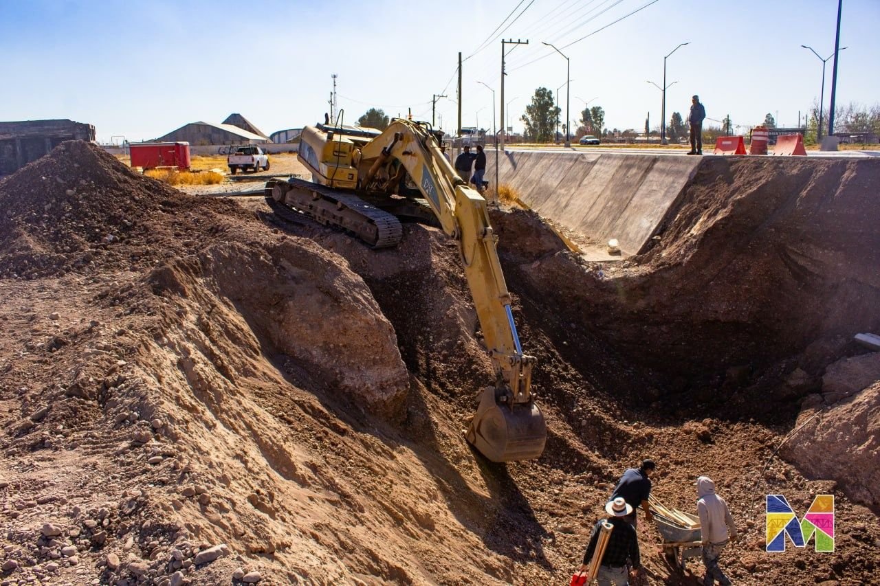 Trabajan en Cárcamo de la Calle Bugambilias en Meoqui para evitar inundaciones