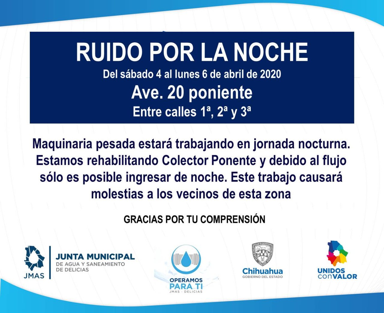 TRABAJOS NOCTURNOS CAUSARÁN RUIDO EN SECTOR PONIENTE: JMAS