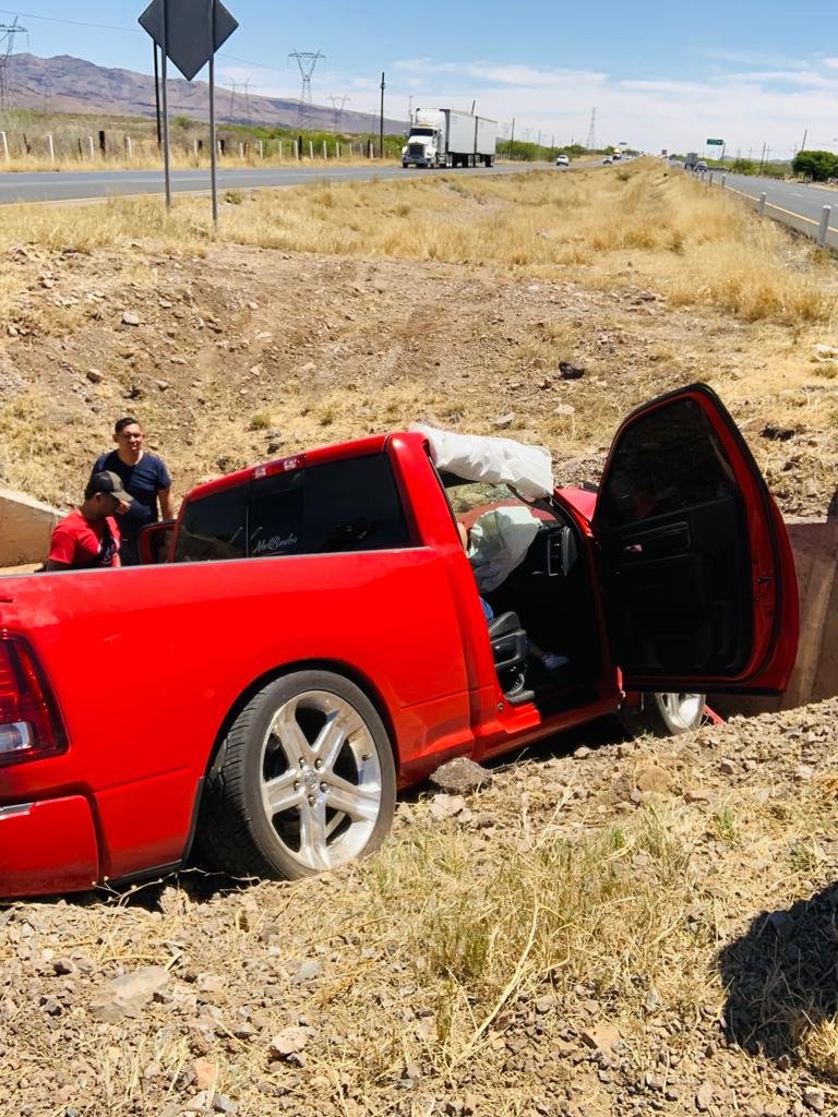 Una pareja resultó lesionada luego de salir de camino en la carretera a Delicias, a la altura del kilómetro 199.
