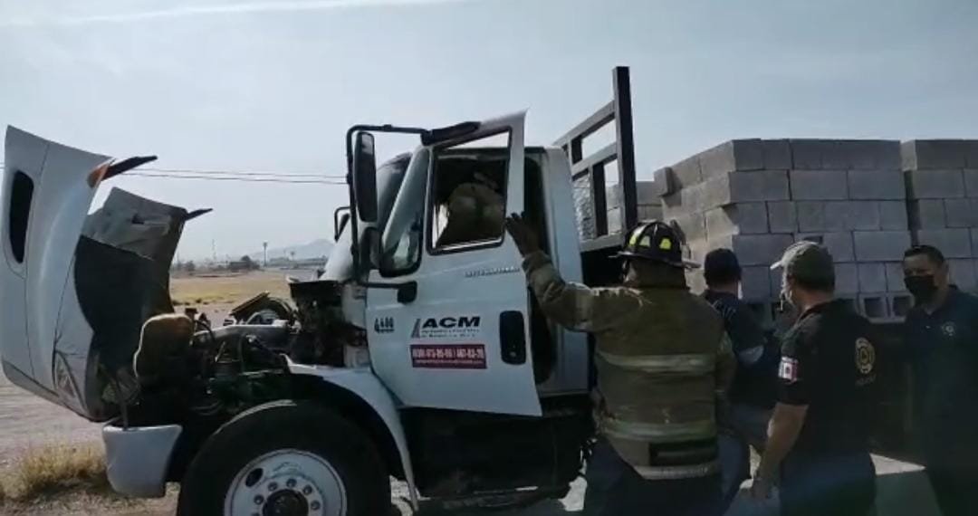 El conductor del tráiler de la empresa ACM, comentó que se dirigía al municipio de Delicias, cuando percibió un olor a quemado, se detuvo y pudo observar unas llamas en el motor.