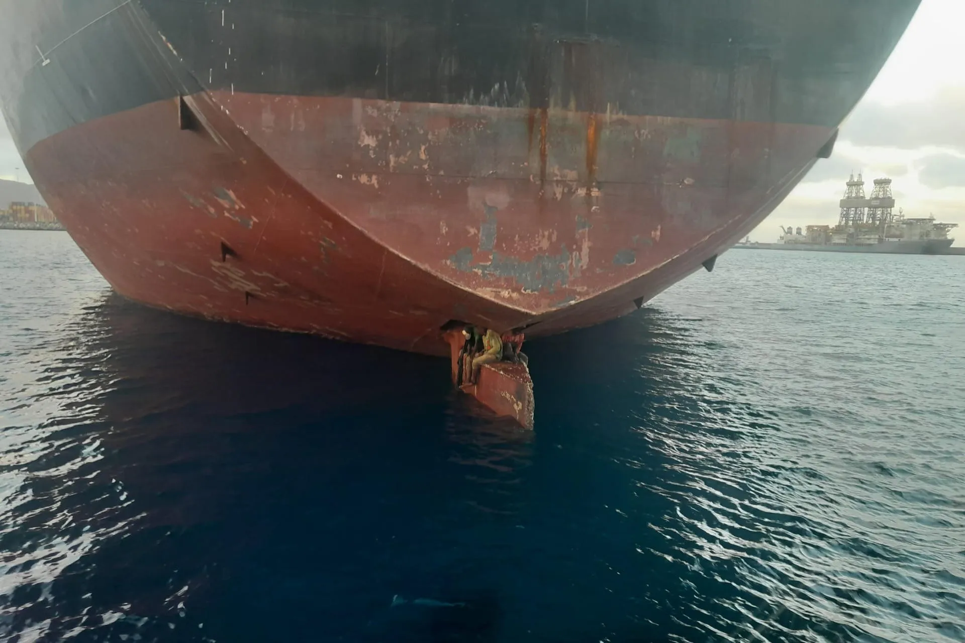 Tres migrantes subsaharianos sobrevivieron a una travesía de once días en la mecha del timón de un barco petrolero que navegó sin escalas entre el puerto africano de Lagos y la ciudad española de Las Palmas de Gran Canaria, en las islas Canarias (Atlántico).