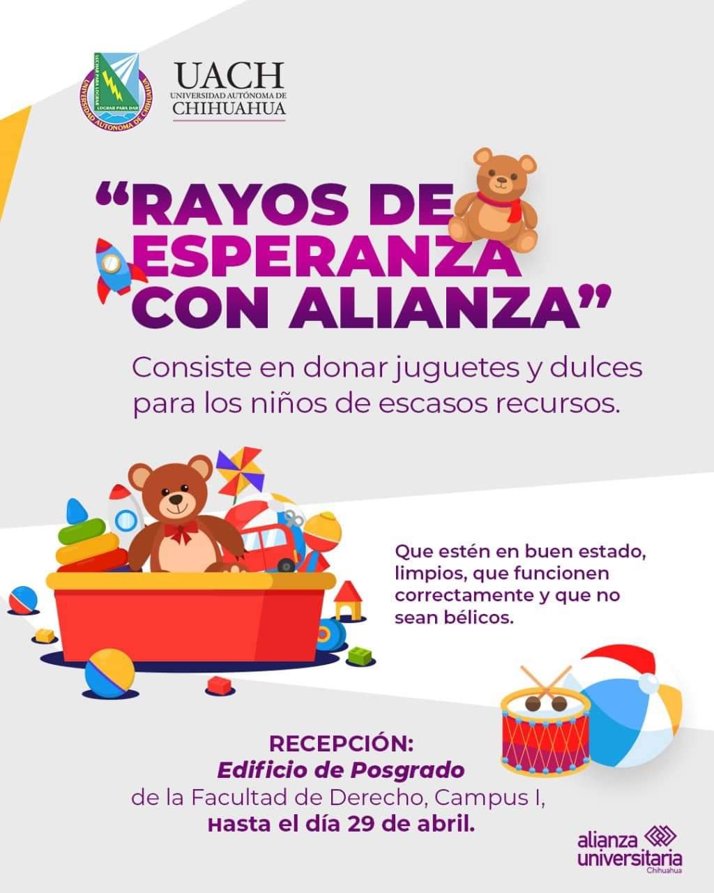 Con el objetivo de regalarle felicidad a niñas y niños chihuahuenses la UACH y Alianza Universitaria, lanzaron la convocatoria “Rayo de Esperanza con Alianza”.
