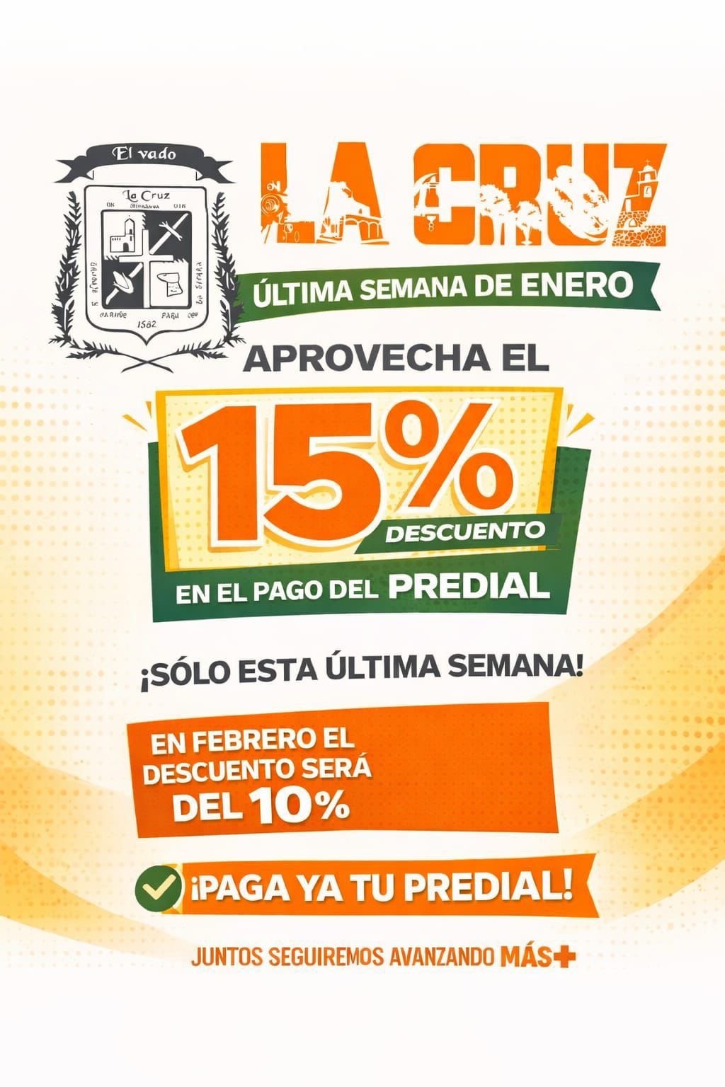 Última semana de enero: invitan a aprovechar el 15% de descuento en el pago del predial en La Cruz