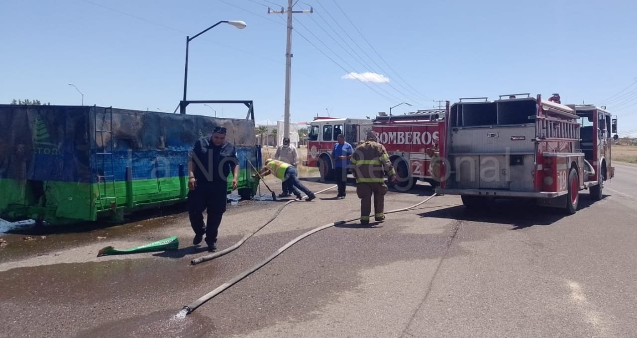Un contenedor de basura propiedad de la empresa Deltor ardió en llamas durante este martes cerca del fraccionamiento Paseos del Algodón.