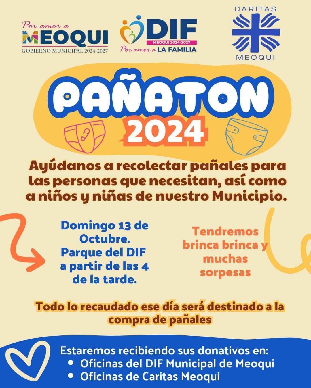 Este año estaremos recibiendo donaciones de pañales para adultos, niños y niñas, y tu apoyo es fundamental. Puedes traer tus donaciones al DIF Municipal y en las oficinas de Cáritas Meoqui.
