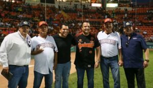 Valenciano encabeza lanzamiento de primera bola en la final de béisbol entre Algodoneros vs Venados