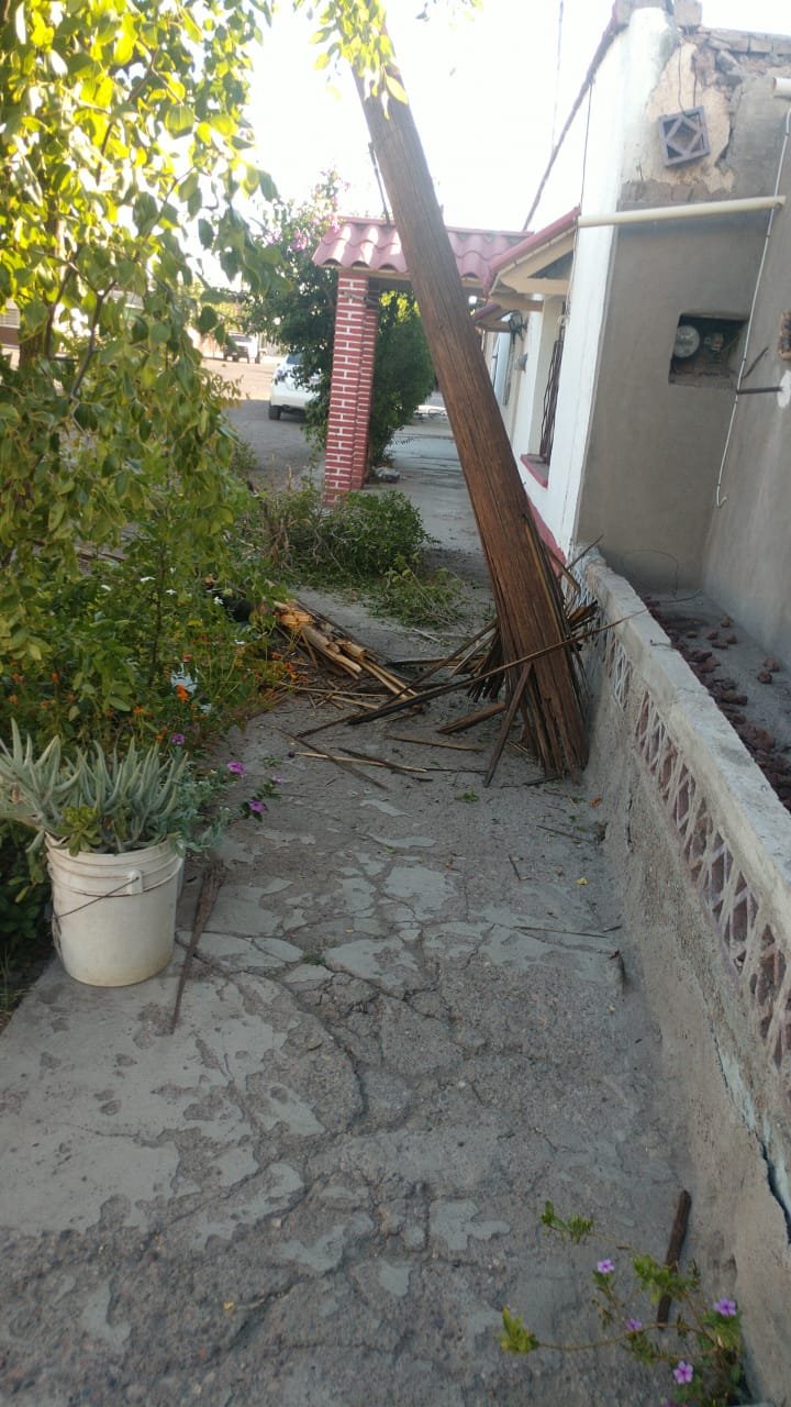 A temprana hora de este jueves, el conductor de una Hummer H3 color blanca, chocó un poste de madera, desprendiendo la base del pavimento.