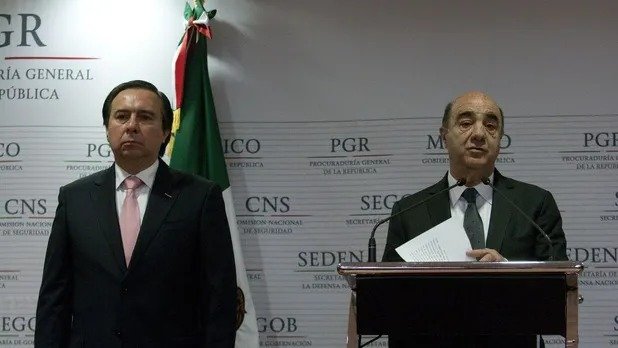 Esa tarde, el ex procurador encabezó una conferencia de prensa en las antiguas instalaciones de la PGR sobre Paseo de la Reforma en la que dio a conocer la detención de cuatro personas que, sostuvo, eran integrantes del grupo criminal Guerreros Unidos.