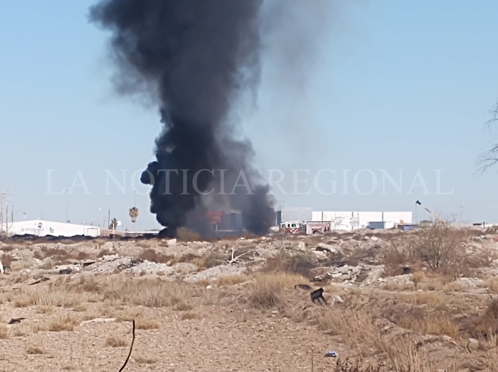 En estos momentos, elementos del departamento de Bomberos de Delicias, están atendiendo un fuerte incendio en basura y llantas en un terreno baldío a espaldas del fraccionamiento Campo Real.